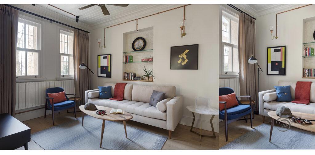 Details: This extended renovation project, restored from only remains after a fire incident, while faithful to original historic foundations and elements, was conceived to create a modernist lifestyle with it’s own century culture and elements. Eventhough located in the heart of the city, the aim was to accomplish an island kind of tranquility, ease and lightness.