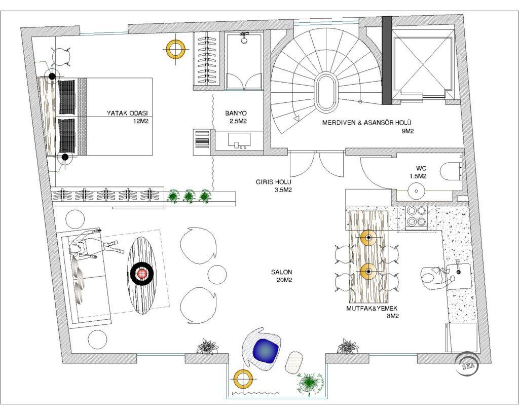 Details: The project area is located in old Galata neighbourhood, a region full of listed buildings. The historical environment parameters were taken into account in the process of designing the mass and facade with modern materials and construction techniques, while interior is designed to maximise the limited space and add versatility. The building contains 3 loft condominiums and a penthouse doublex.