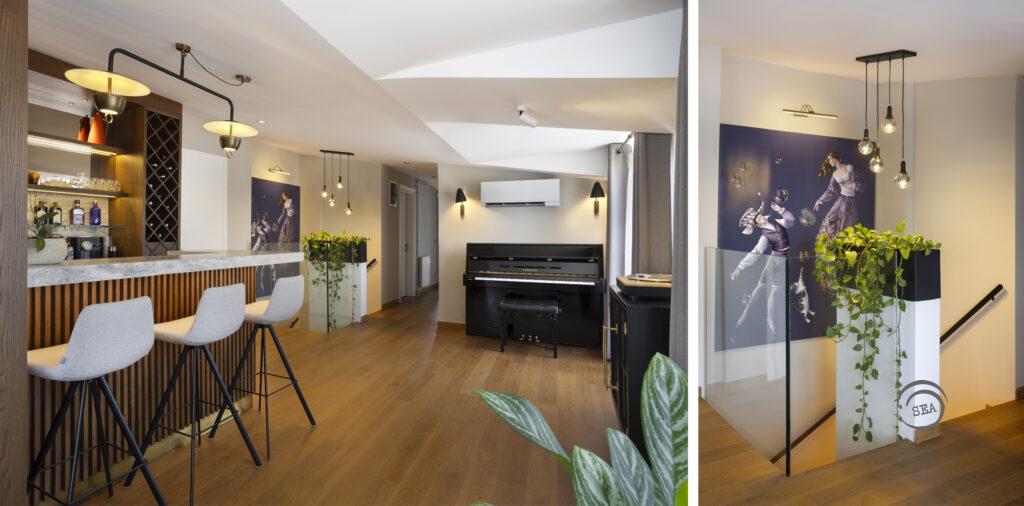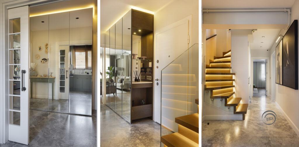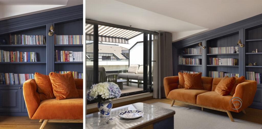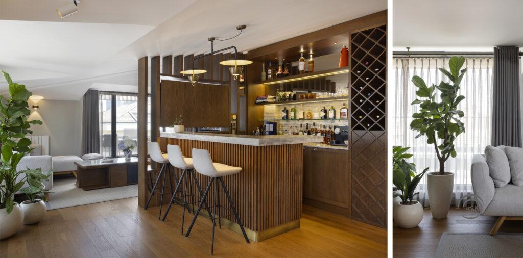Details: This penthouse duplex, located in Etiler’s Nispetiye district, was designed to offer a calm and minimalist living space. The owners’ request for distinct functions on each floor became the main driver of the spatial layout. The lower level designed for everyday use and entertaining. A neutral material palette was used to create a light and tranquil atmosphere. The upper floor, inspired by the colors of sunset, incorporates warmer tones and connects directly to the terrace through a built-in bar and prep area, creating a cozy setting for evening gatherings.
