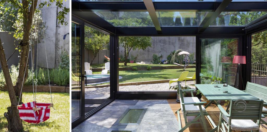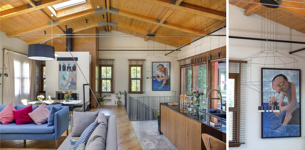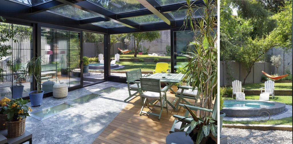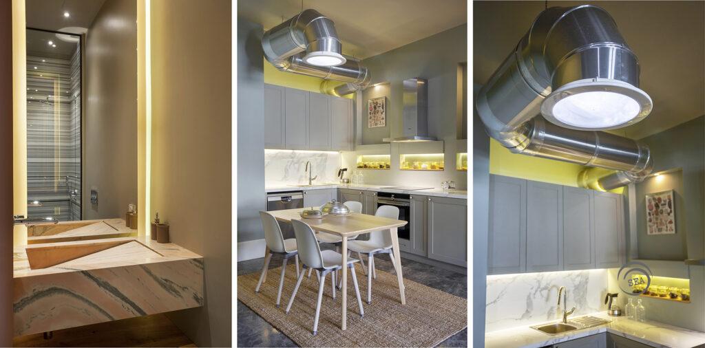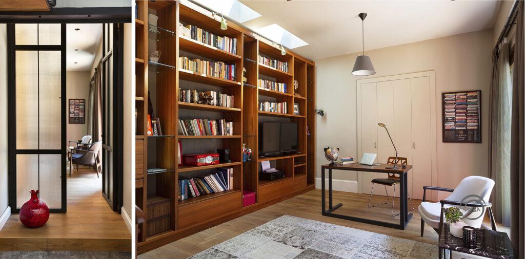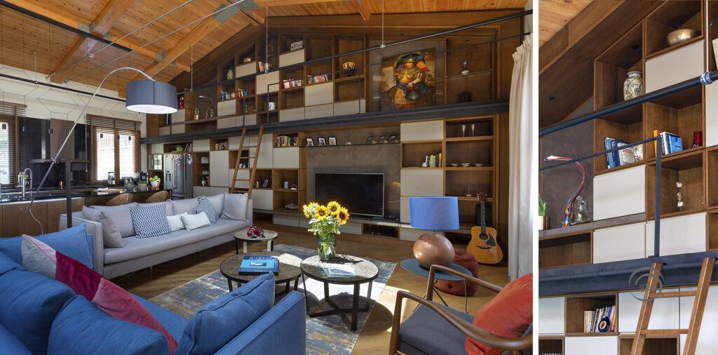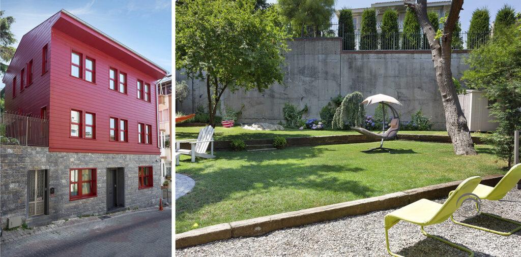 Detaylar: Beylerbeyi semtinde boğaza bakan yapının bulunduğu arazinin doğal eğimi sayesinde 3 katlı yapının her katından ayrı bir bahçeye ulaşılabilmektedir. Yapının virane durumundaki orijinal dış sınırları korunarak iç mekânın efektif kullanımına imkan vermek için katlar yeniden planlanmıştır. Yapının giriş-sokak kotundan ulaşılan en alt katı açık mutfak ve yaşam alanı ile bir yatak odası, çamaşırhane ve banyondan oluşmaktadır, bu kat mutfak tarafından toprak altında kaldığından ötürü gün içinde mutfak alanına doğal ışık alınabilmesi için ışık bacası kullanılmıştır. Orta ve üst katlara bahçede bulunan tek kollu açık sistem merdivenlerle ulaşılabilirken aynı zamanda içeriden de bu sirkülasyonu sağlamak üzere galeri boşluğuna asılı uçan bir çelik merdiven tasarlanmıştır. Orta katta bulunan ana girişten çalışma odası, misafir yatak odası ve master yatak odasına ulaşılmaktadır. Master yatak odasında his/hers giyinme koridorları master banyo ile buluşurken, ön kısmındaki dinlenme alanı orta kotta bulunan bahçeye açılmaktadır. Bir üst katta ise açık mutfaklı yaşam alanı ve kış bahçesi tasarlanmıştır. Evin kimliğini ve ruhunu yansıtan çok işlevli olarak tasarladığımız kütüphane ünitesi yapının özgün konseptinin çıkış noktasıdır. Bu yapının çevreye ve ekosisteme duyarlı olarak tasarlanmış çevreci bir yapı olması eşsizliğini pekiştirmektedir. Yağmur suları toplanıp arıtılarak bahçe sulama, rezervuarla gibi kullanımına uygun ıslak hacimlerde yeniden kullanılmaktadır. Evin ana girişinde garaj üzerinde tasarlanan bostan bütün yıl ev sahiplerinin sebze ihtiyaçlarını karşılamaktadır. Yapının ısıtma soğutması için min. Enerji kullanan ısı pompası sistemi kurulmuştur, çatı ve cephe gibi ahşap elemanların ısı izolasyonları cellubor malzemesi ile yalıtılmış olup pencere açıklıklarında bölgede yapının döneminde görülen oran ve tipoloji kullanılmıştır. Gün içinde max. Seviyede ışık alınabilmesi için çatı pencereleri ve teras ışıklıkları kullanılmıştır.
